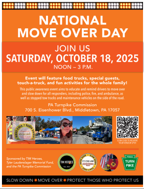We will be attending National Move Over Day at the PA Turnpike HQ on October 18th from 12n-3pm.